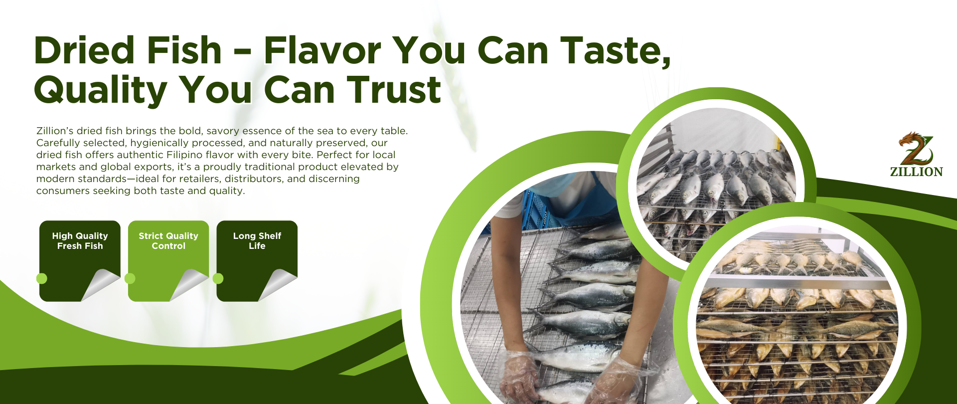 Zillion International Foods Corporation is a trusted name in food processing, manufacturing, importation, and exportation. Proudly rooted in Filipino heritage, we specialize in high-quality processed foods such as dried fish, bagoong, smoked fish, breakfast meats (like longganisa and hotdogs), and a full range of condiments. Our commitment to excellence, innovation, and food safety allows us to serve both local markets and global communities with products that are rich in flavor, tradition, and authenticity.